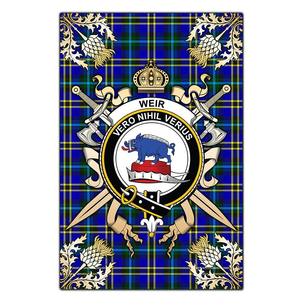Weir Modern Tartan Crest Black Garden Flag - Gold Thistle Style