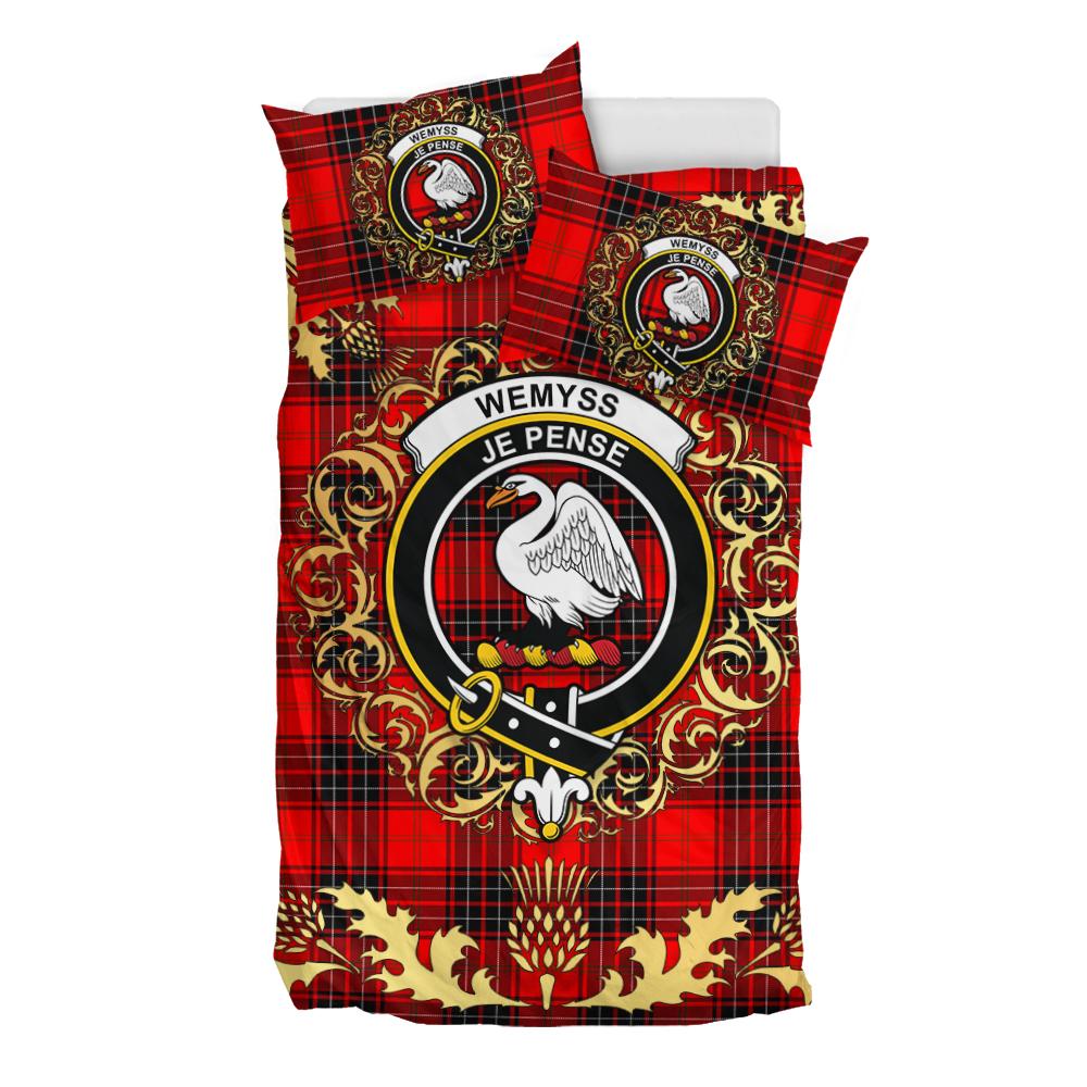 Wemyss Modern Tartan Crest Bedding Set - Golden Thistle Style