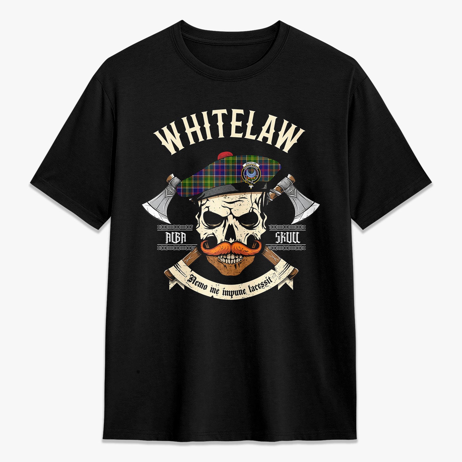 Whitelaw Tartan Crest 2D T-shirt - Alba Skull Style,