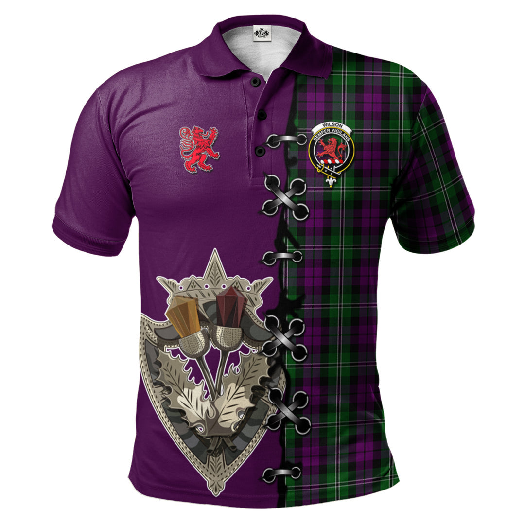 Wilson Tartan Polo Shirt - Lion Rampant And Celtic Thistle Style