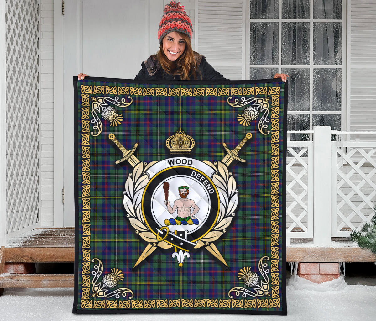 Wood Tartan Crest Premium Quilt - Celtic Thistle Style